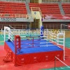 7M*7M*1M INTERNATIONAL STANDARD COMPETITION BOXING RING 1. Size700 x 700cm. From corner poles i.e total area.2. Size 600 x600cm from rope to rope i.e playing area.3. Height of ring is 1m From ground level.4.Four ropes4cm thick covered with synthetic cover in white, blue and red colour are used or P.V.C. Pipe.5. Corner poles made of 2.6m x 16cm pipe in white, blue and red colour.6. Laminated waterproof wooden planks of18pcs 2.33m x1.165m x3cm thick are used on the top of six tables. These planks make level of the floor equal & nice.7.Total Wooden floor is covered with 2.5cm(E.P). Expended polythene foam. Then this foam is covered with waterproof canvas cover.8. Four protection corner padding are used to cover corner poles.9..Some necessary parts,such as three ladder,two seat,side skirt, etc.